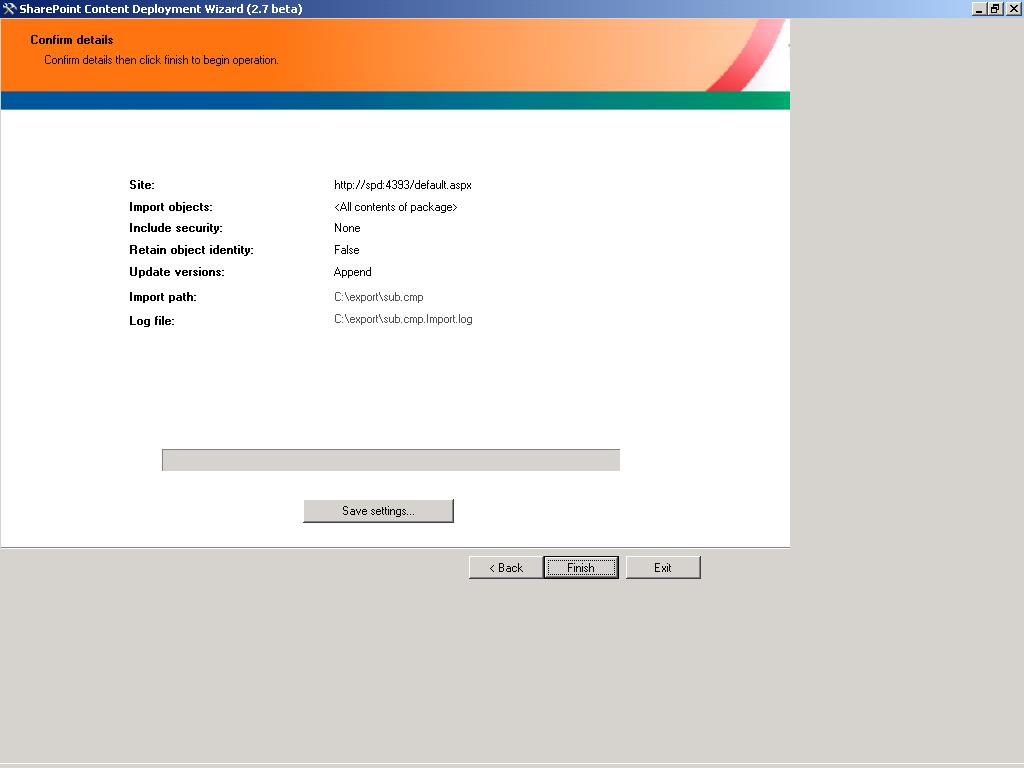 Figure 6: The details are shown back for confirmation, and when ‘Finish’ is clicked the import will begin: