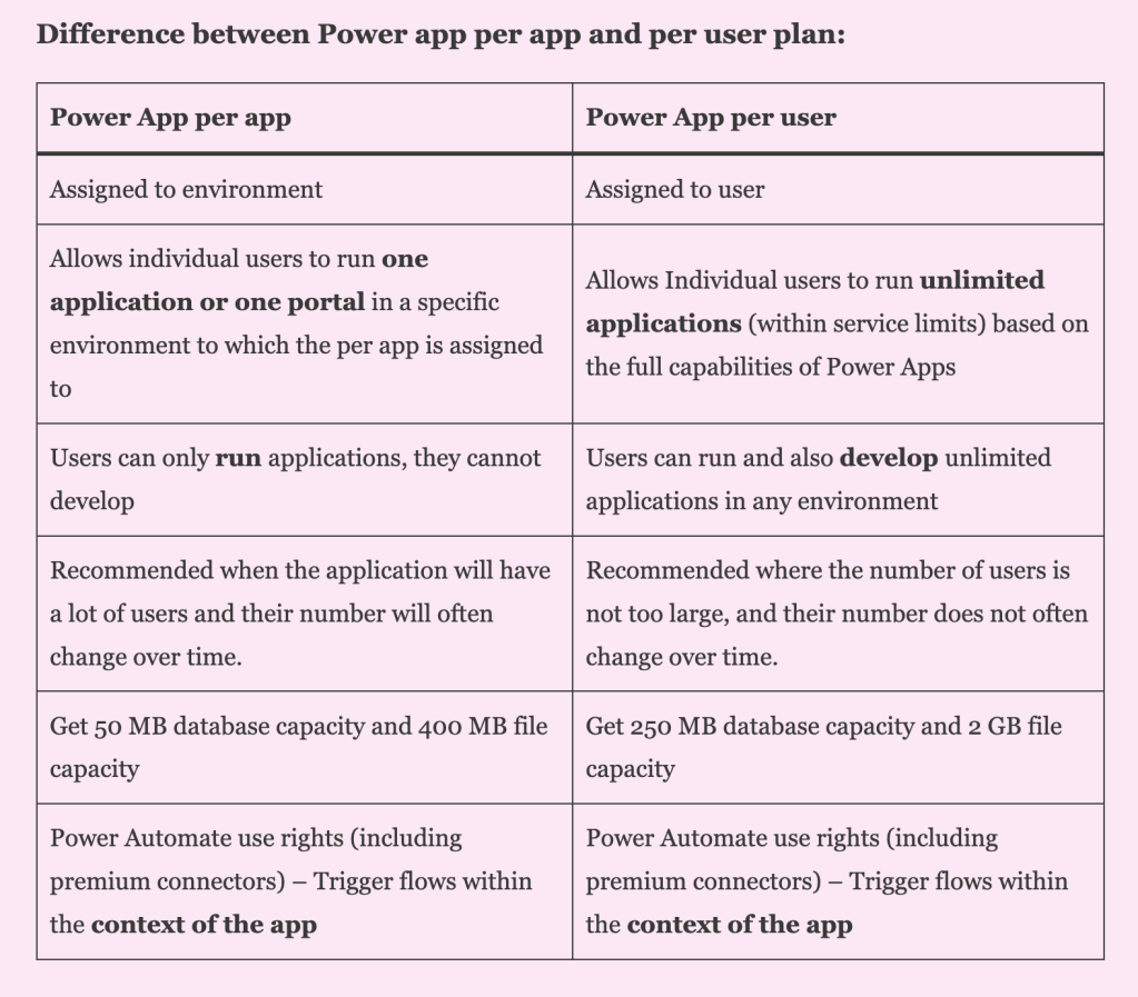 Difference between Power app per app and per user plan Date: August 13, 2022Author: Bharath 0 Comments Share:Tweet Click to email a link to a friend (Opens in new window) Email Click to print (Opens in new window) Print Like Loading... Related