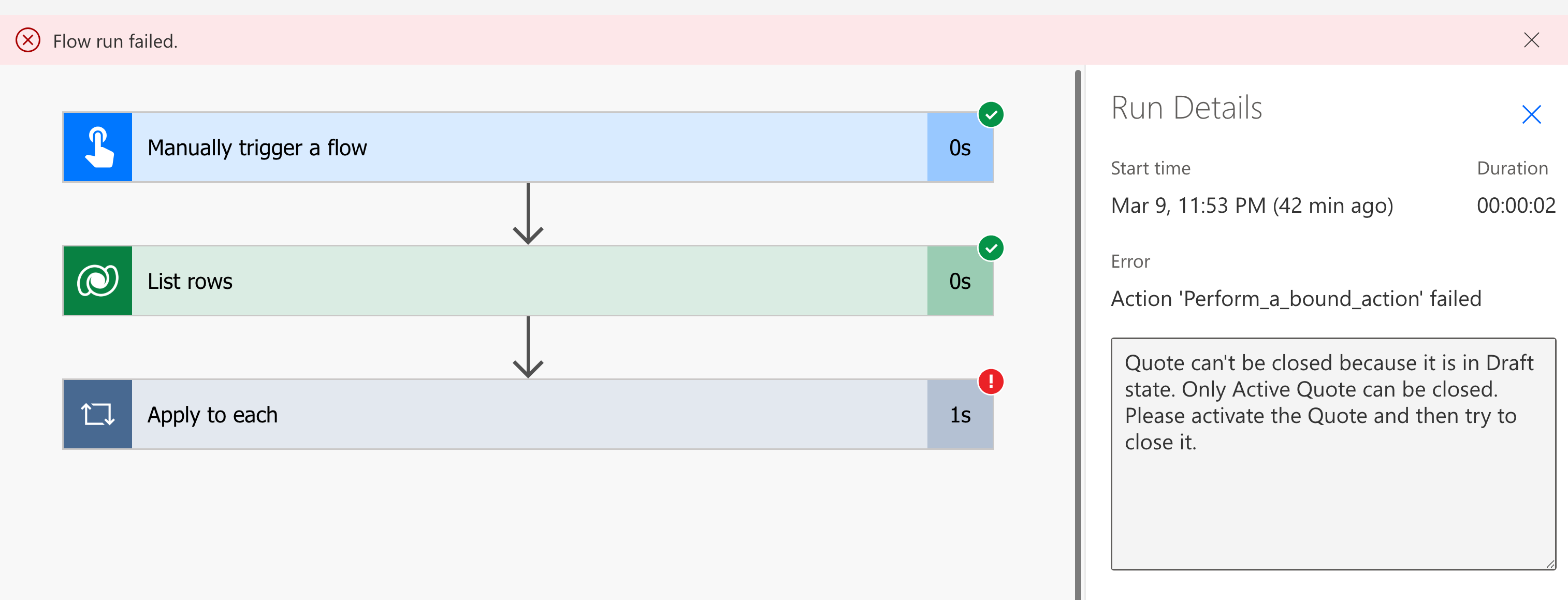 So in Dynamics 365 Sales, a Quote must be in an Active state before it can be Closed. Since here Quote items are in Draft, Power Automate cannot directly update it to a closed state. You need to first Activate the Quote before marking it as Closed.