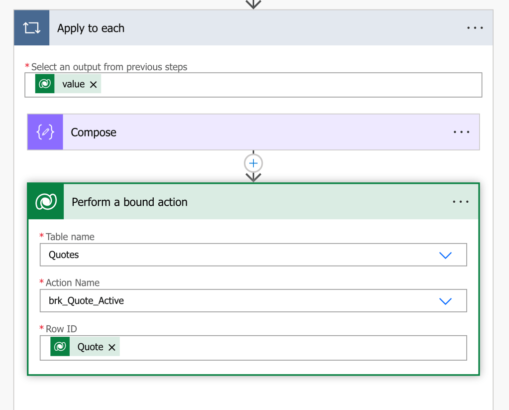 In Apply to each add “Perform to bound action”.