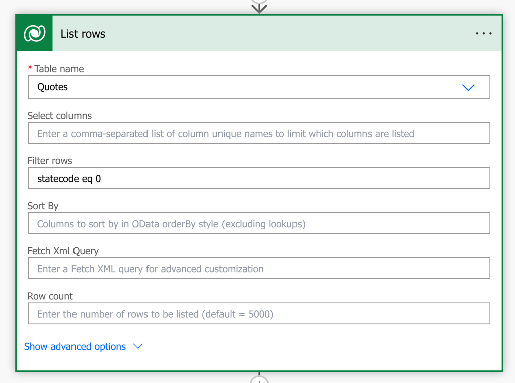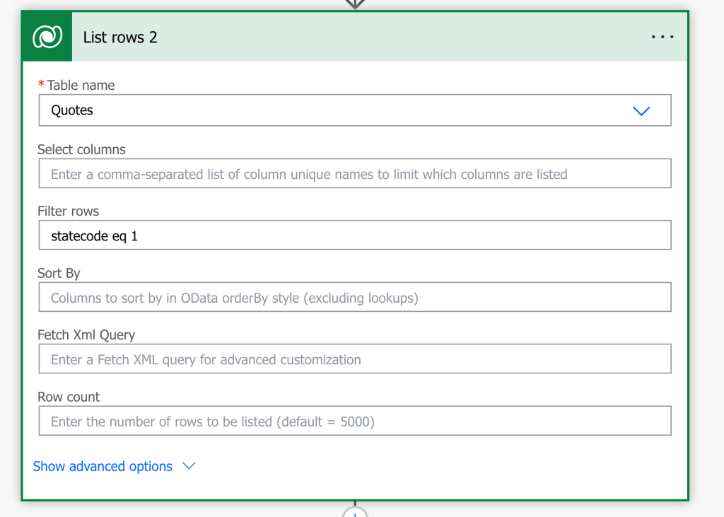 - List all items in Quote Table (Dataverse) with Status equals to Draft. In filter Query statecode eq 0. You must give as in Quote Table “Status” Column is choice type.