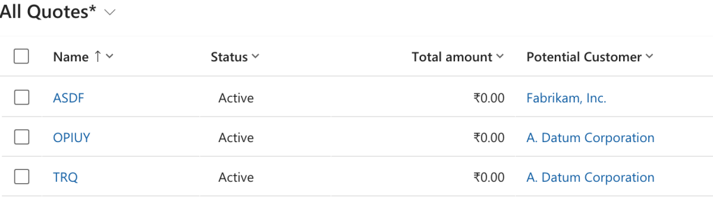 Add some name say Quotes_Active and select table “Quote”. keep start from Blank and Create. You will be redirected to a classical d365 page.