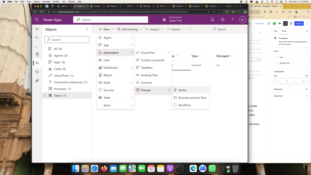 Now before writing a PowerAutomate Cloud flow. The trick is to add a “Action” . So for that on top menu Click “New” —> “Automation” ——> “Process” ———> “Action”.
